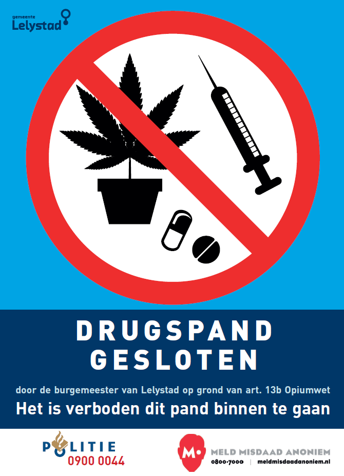 De politie en gemeente vragen inwoners en ondernemers dan ook om alert te zijn op signalen die mogelijk kunnen duiden op drugshandel. Deze signalen zijn bijvoorbeeld aanloop op vreemde (nachtelijke) tijdstippen, drugsafval op straat, een vreemde geur rondom het pand, overlast van personen die onder invloed zijn of bezoekers van het pand die steeds maar korte tijd blijven.