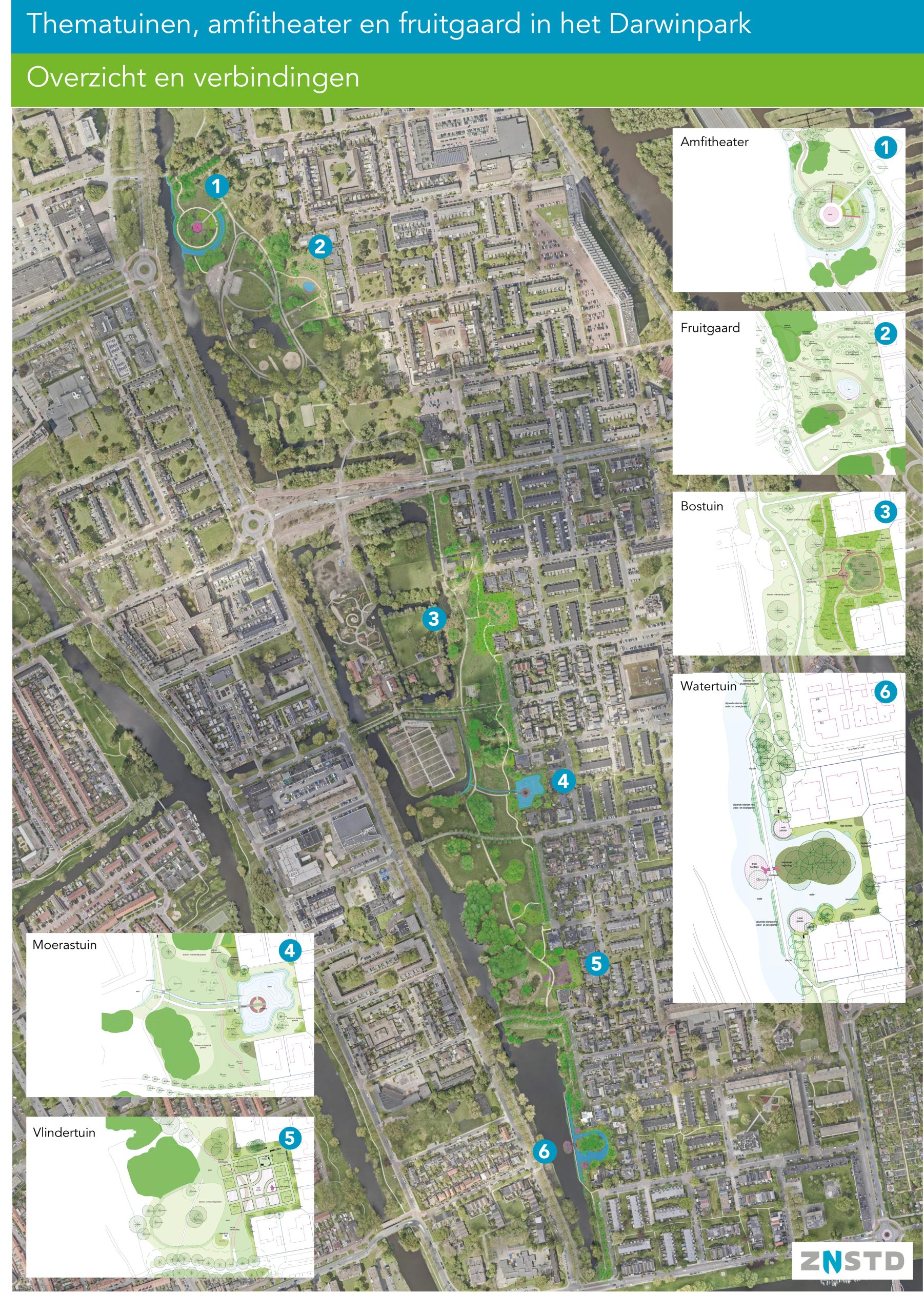 Ondanks dat de omgevingsvergunning spreekt over de aanleg van 4 thematuinen, spreken de lokale media en andere sites dat het Darwinpark in haar zuidelijke deel 4 thematuinen heeft met landschapskunstwerken (kunstenaar Kees Bierman) en in het noordelijke deel een amfitheater. De bedoeling is dat het amfitheater wordt gerenoveerd en de 4 thematuinen verbeterd.