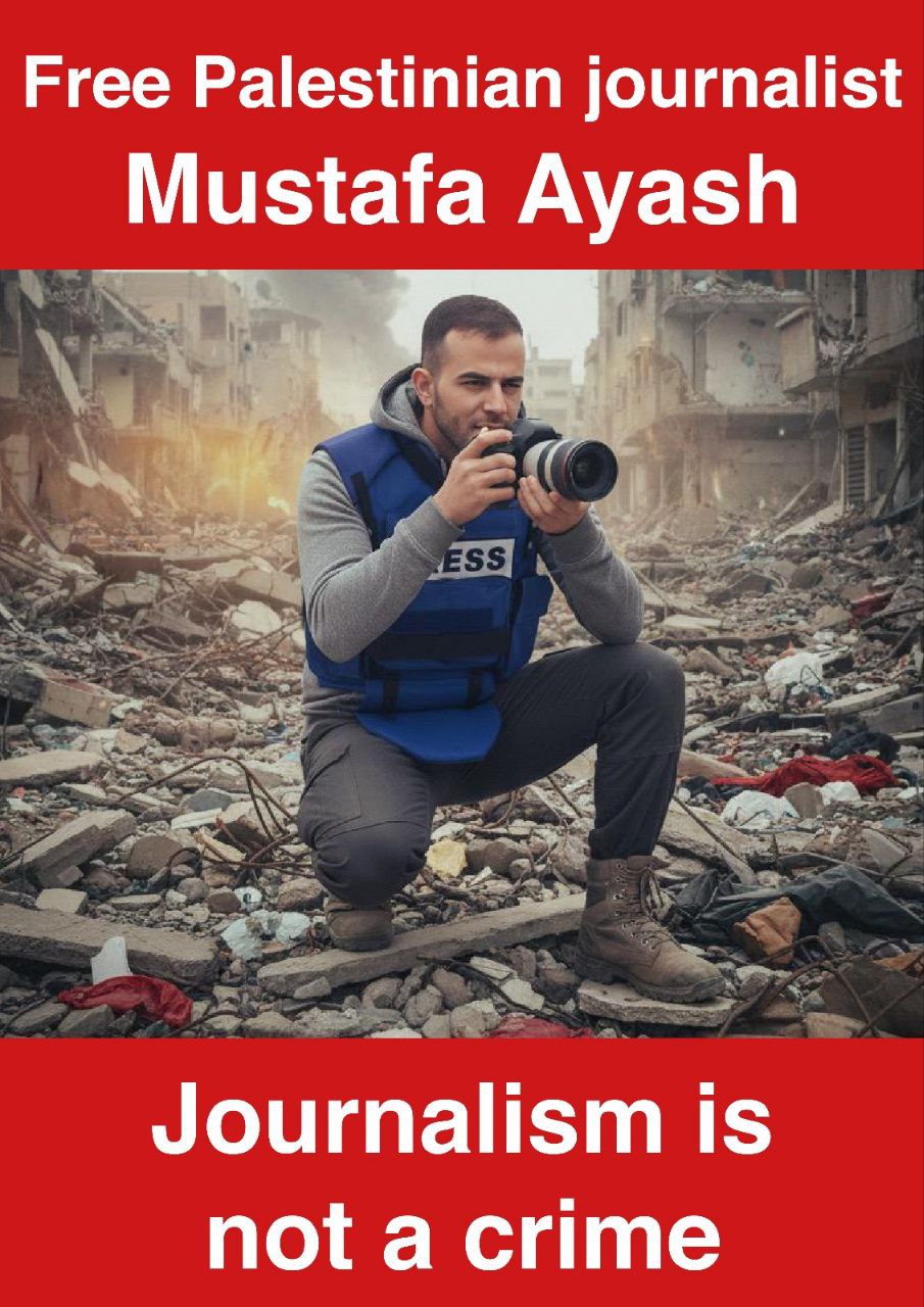 Mustafa Ayash is in 1992 geboren als Mustafa Moien Mahmoud Ayash en is een Palestijns journalist en de oprichter en directeur van de Palestijnse nieuwszender Gaza Now dat in 2005 werd opgericht. Bij een bombardement op het vluchtelingenkamp Al-Nuseirat in november 2023 is het huis van de familie van Mustafa Ayash aangevallen en werden zijn vrouw, kinderen, zijn ouders en andere familieleden gedood. In dezelfde tijd maakte de VN bekend dat Mustafa Ayash was vermoord en meldde dit in een rapport over de moord op journalisten in Gaza. Alleen het rapport heeft de moord op de journalist bekend gemaakt, maar werd opgepakt door de media van de bezetter van Palestina om twijfel te zaaien over Gaza Now. Degene die tijdens de aanval ook gedood werd was niet Mustafa Ayash, maar zijn broer Muhammad Ayash, die fotojournalist was van Gaza Now.
